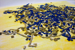 Dall’unione delle singole tessere, diverse tra loro per colore, dimensione, materiale e provenienza, ha origine un disegno e una melodia d’insieme.