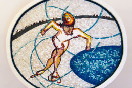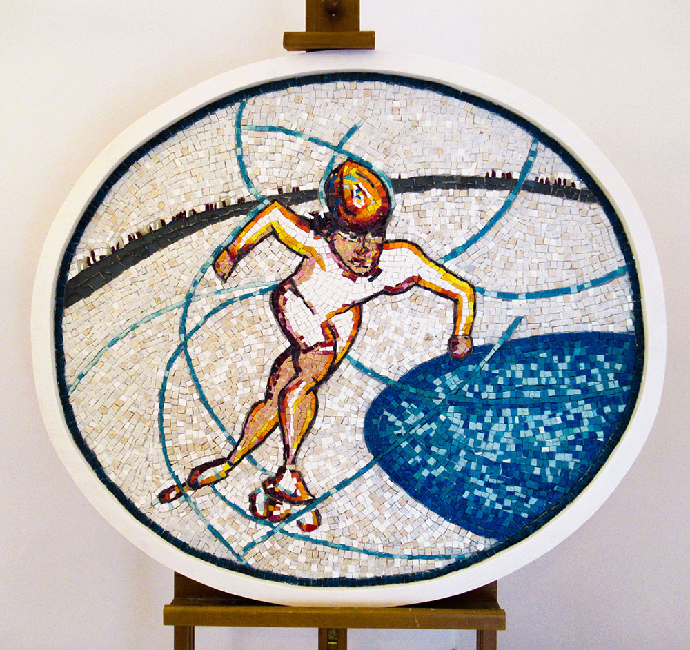 Il pattinatore - mosaico di marmi e vetri veneziani - 87x98cm - 2017