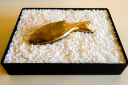 Uomo che viene dal mare - scultura in bronzo, cristalli di marmo e ferro - cm 8x30x22cm - 2019